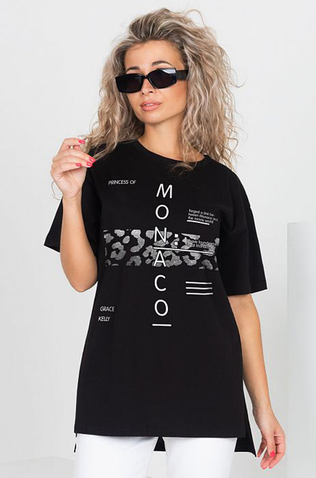 Стильная женская футболка оверсайз выполнена из 100% натуральной хлопковой ткани кулирная гладь. Футболка свободного кроя с заниженной линией плеча, боковыми разрезами и удлиненной спинкой.