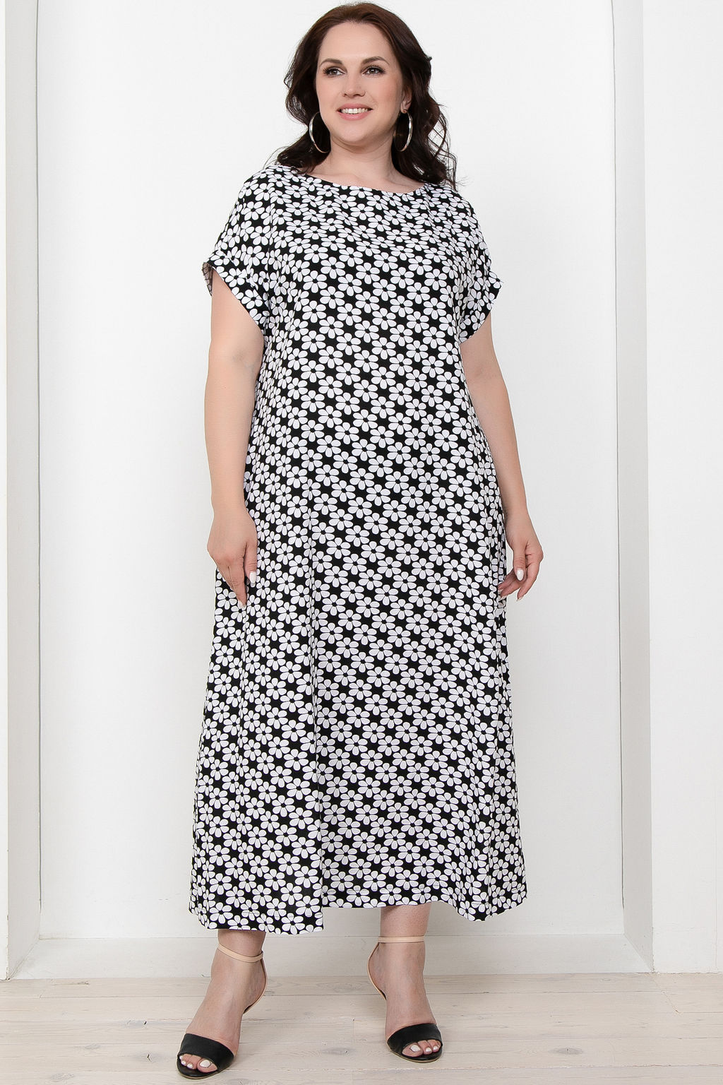Платье женское А-образного силуэта, с карманами в боковом шве.Горловина круглая, рукав цельнокроенный, короткий, на притачной манжете.