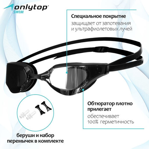 Очки для плавания с зеркальными линзами + беруши и набор носовых перемычек