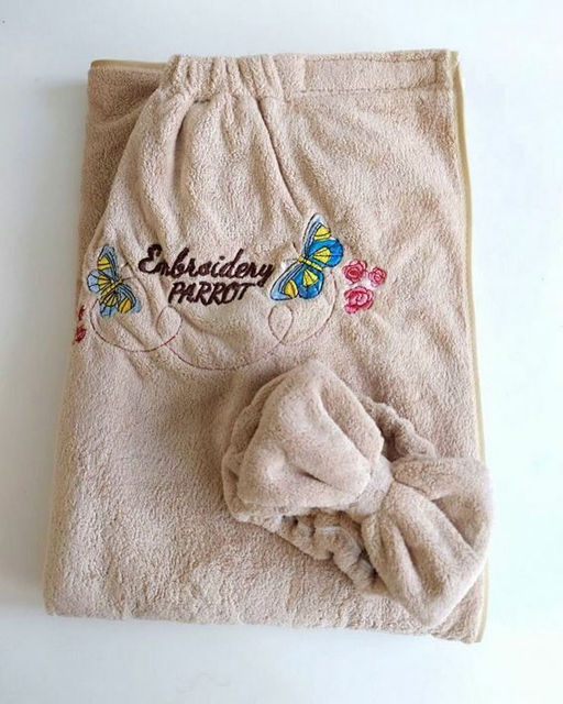• Комплект женский для бани и сауны "Кокетка"-БЕЖЕВЫЙ микрофибра 2 пр. (парэо +повязка на голову)