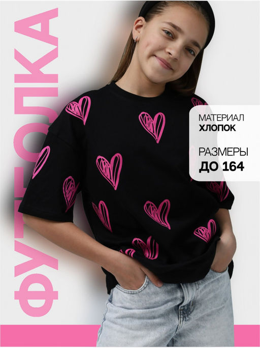 Стильная футболка - хлопок 100 %, во время подвижных игр можно вовсю бегать наперегонки на школьном дворе или играть на детской площадке. Ребенок получит комфорт на весь день!  В ней можно провести целый учебный день, а после пойти играть на детскую площадку будет удобно все время. А крой оверсайз и спущенные рукава дают дополнительную свободу для движений. Стильный принт поднимет настроение даже в пасмурный день. Рисунок нанесен по современной технологии, поэтому он не трескается и не деформируется при стирке.­