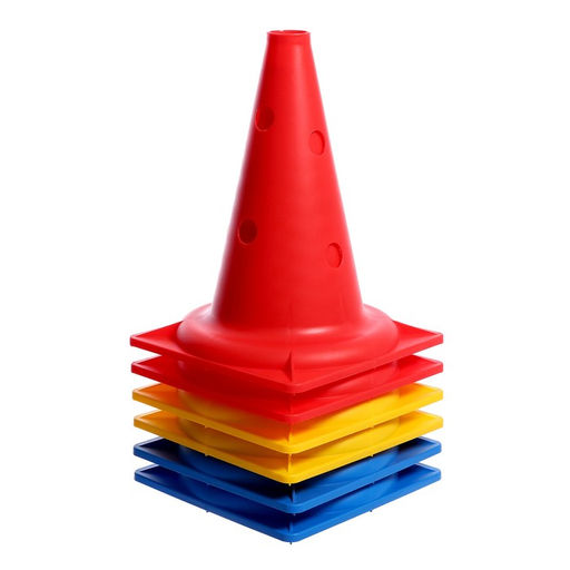 Конусы помогут провести спортивные и развлекательные мероприятия с детьми. Разграничивайте помощью такого инвентаря территорию во время игр или тренировок и не заботьтесь о сложной разметке площадки.Особенности конусовРазработаны и произведены из российских материалов и соответствуют требованиям ГОСТ Р 50962-96.Изготовлены из безопасного пластика.Устойчивы к ветру.Яркие конусы выполнены в 3 разных цветах и хорошо заметны на любой спортивной площадке.Цвета не выгорают на солнце.В комплекте 3 гимнастических палки. Для них в конусах есть отверстия. Втулки в комплект не входят.Качество товара подтверждено сертификатамиСтрогий контроль на всех этапах, начиная от производства, заканчивая упаковкой товара, исключает брак и делает конус действительно качественным. Имеет сертификат соответствия ЕАС. Возраст: От 3 лет. Наша разработка: Да.