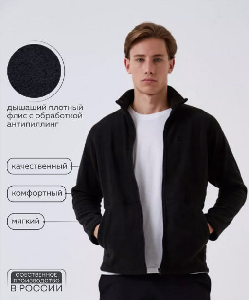Мягкая и теплая мужская кофта из флиса прямого силуэта отлично подойдет для активного отдыха и занятий спортом. Мягчайшая фактура soft touch сохраняет тепло и обеспечивает комфортную для тела температуру при любых погодных условиях. Плотность материала - 240 г/кв.м - позволяет использовать кофту как самостоятельную флисовую куртку или как средний слой под верхнюю одежду в холодное время года осенью или зимой. Мужская флисовая кофта на молнии поддерживает мембранные свойства верхней одежды. Двусторонний флис обработан системой антипиллинг – не скатывается, не осыпается. Материал не требует специального ухода, не растягивается и не линяет.