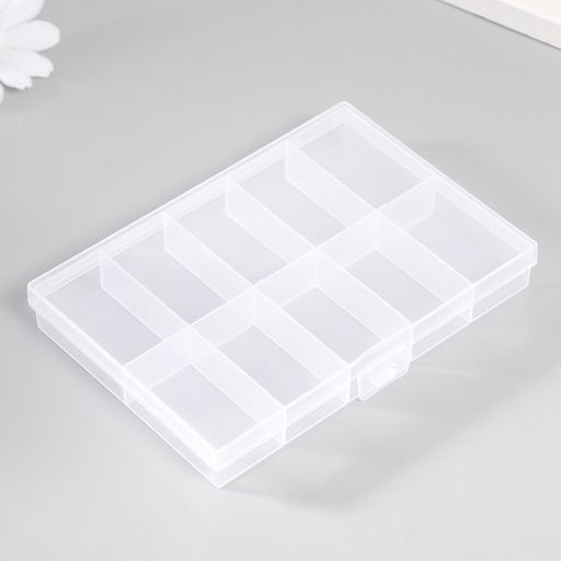 • Шкатулка пластик для мелочей "Прямоугольная" прозрачная 10 отделений 9х13х1,7 см