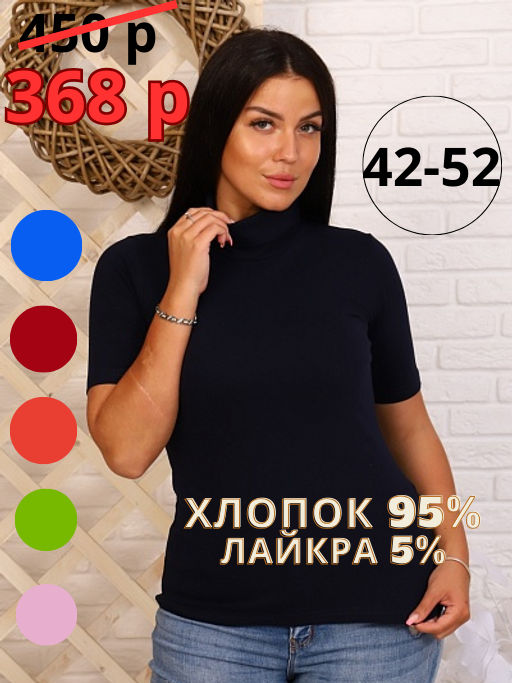 * Состав: хлопок 95%, лайкра 5%Водолазка женская, рибана с лайкрой однотонная
