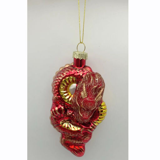 Игрушка елочная Дракон - прекрасный выбор для тех, кто любит создавать новогоднее настроение в своем доме. Эта стеклянная игрушка будет являтся символом года 2024, доставляя владельцу удачу и счастье. Материал: Стекло