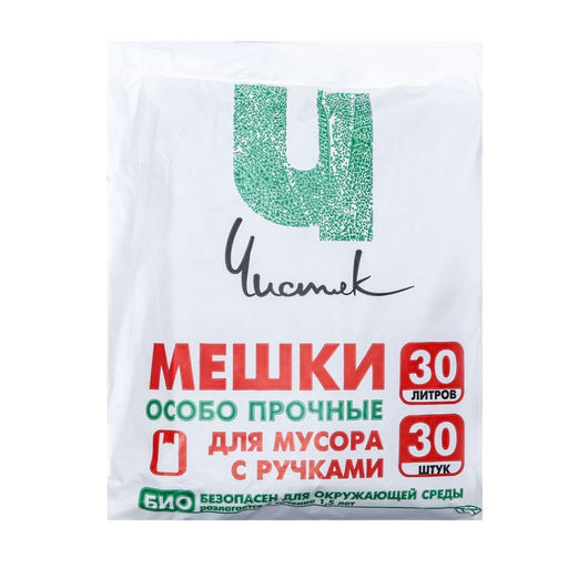 С ручками: Да. Толщина, мкм: 14. В упаковке, шт.: 30. Объём, л: 30. С завязками: Нет. Ароматизированные: Нет. Биоразлагаемый: Да.