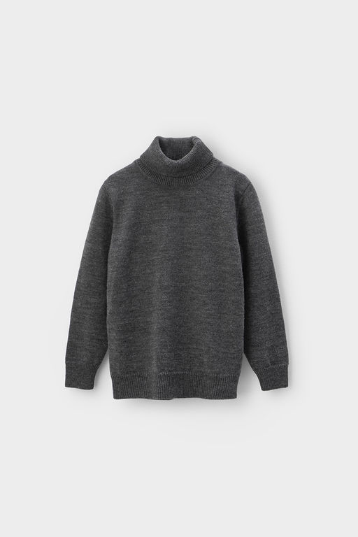 Вязаный джемпер для мальчика из мягкой полушерстяной пряжи. Высокий воротник с отворотом хорошо защищает от холода. Длинные рукава с манжетами. Внизу эластичный пояс. Изделие сохраняет форму и стойкий цвет после многочисленных стирок.