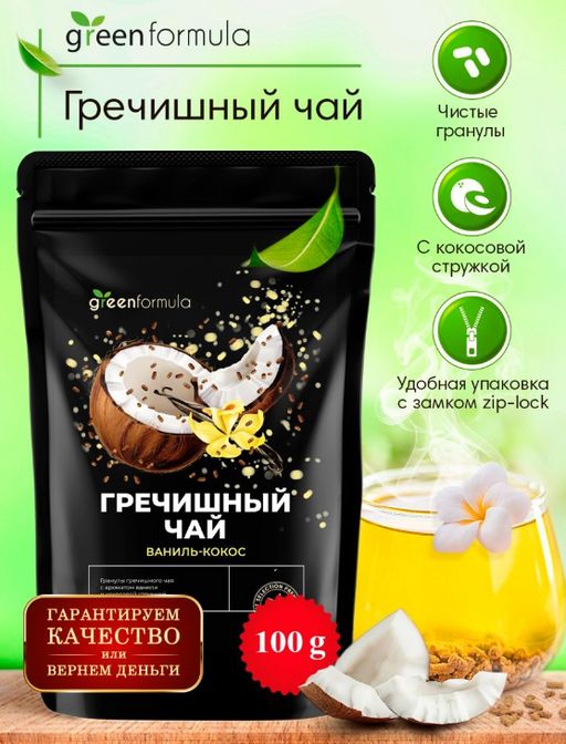 Описание товара Состав: семена татарской гречихи 100%, кокосовая стружка, ваниль.