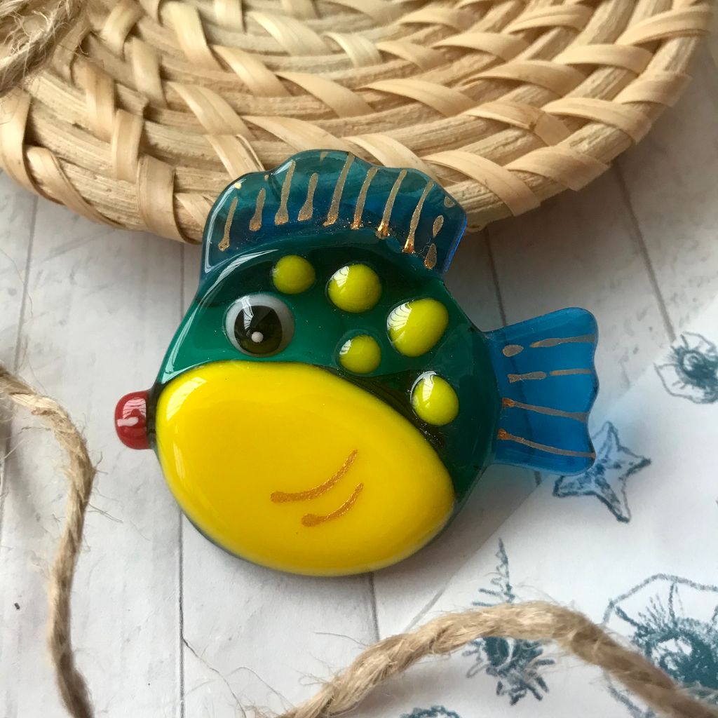 6 см. Магнит выполнен из художественного стекла в технике фьюзинг.