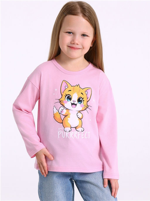 Уценка лонгслив,хлопок 100%,кулир / хлопок 100%,светло-розовый14 / - / Радостный котенок / - / - / -,Лонгслив для девочки выполнен из кулира легкого хлопкового плотна. Изделие прямого силуэта и свободного кроя, с длинными рукавами со спущенной линией плеча, вырез горловины обработан эластичной бейкой из полотна компаньона, украшено стильным принтом. Уход: только машинная стирка (руками не стирать!) при температуре 40 градусов, без предварительного замачивания. Изделия с печатью перед стиркой необходимо вывернуть на изнаночную сторону.