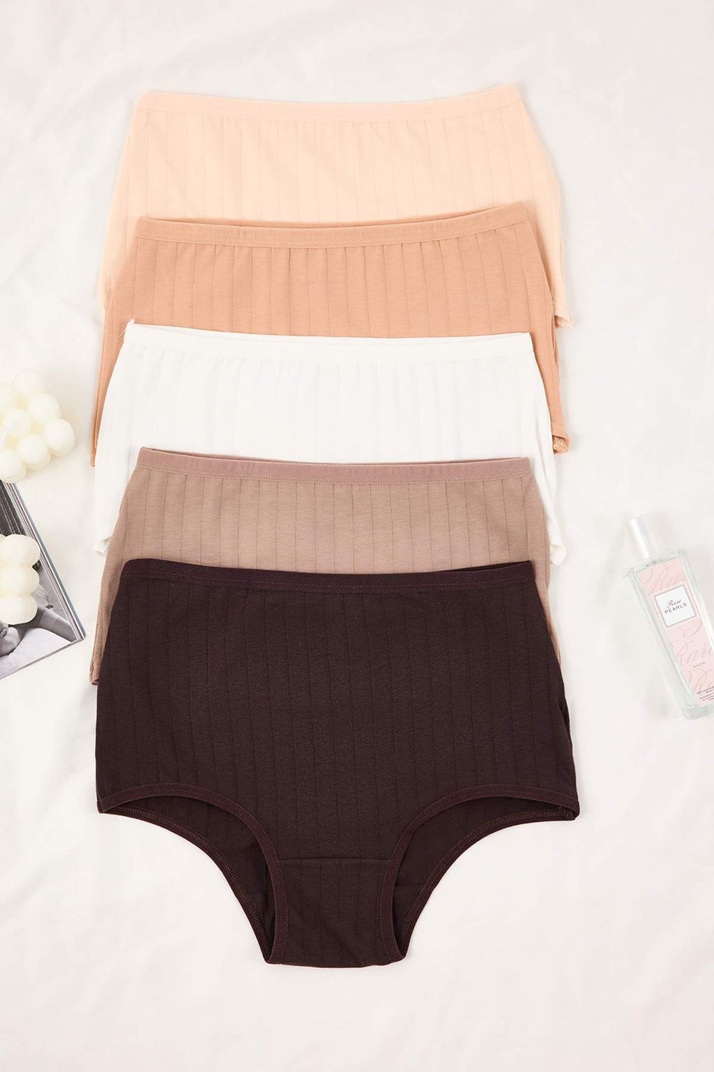 • Kahverengi-Cok Renkli 5li Paket Pamuklu Yuksek Bel Klasik Orme Kulot THMSS26KU00003