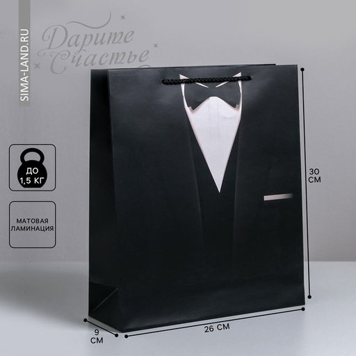 Плотность, г/м²: 190. Допустимый вес вложения, г: 1500. Тематика: Мужская. Тематика праздника: 23 Февраля. Тематика праздника: Универсальная тематика. Отделка пакета: Ламинация. Вид ручки: Ручка-шнур. Особенности: Без особенностей. Бесплатная доставка: Да. Наша разработка: Да. Размеры товара: 9/30/26.