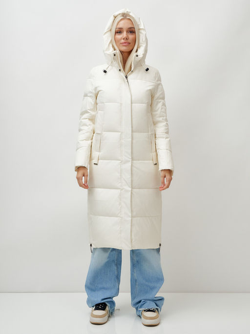 Название модели: Пальто утепленное стеганное зимнее с капюшоном женское бежевого цвета 9608B