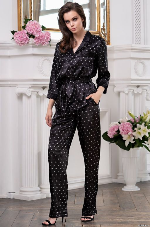 Комплект-тройка Mia-Mella состоит из жакета с центральной застежкой на пуговицы c длинными рукавами, топа и брюк. Комплект выполнен из принтованного искусственного шелкового полотна с атласным блеском. Состав:100% полиэстер