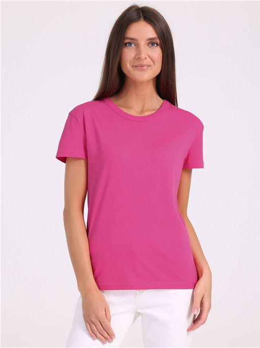 футболка,хлопок 100%,кулир / хлопок 100%,ярко-розовый12 / - / - / - / - / -,Футболка выполнена из легкого хлопкового полотна. Изделие свободного покроя с короткими рукавами и округлым вырезом горловины. Уход: только машинная стирка (руками не стирать!) при температуре 40 градусов, без предварительного замачивания. Изделия с печатью и декором перед стиркой необходимо вывернуть на изнаночную сторону.