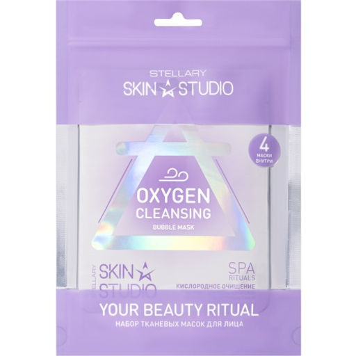 Универсальный набор из четырёх тканевых масок Stellary Skin Studio — идеальный подарок для себя и близких, где каждая маска направлена на совершенствование кожи. — Oxygen Cleansing Bubble Mask — пузырьковая маска для очищения кожи с экстрактом центеллы азиатской и комплексом пре- и пробиотиков. Она активируется после вскрытия упаковки, и при взаимодействии с кислородом образуются пузырьки светло-фиолетового цвета. Маска сужает поры, выравнивает тон, сокращает и подсушивает воспаления. — Ocean Power Hydrating Mask — маска с морским коллагеном и гиалуроновой кислотой для глубокого и длительного увлажнения кожи. Она заметно повышает её эластичность и упругость, разглаживает мелкие морщинки и освежает цвет лица. — Plant Recovery Nourishing Mask — маска с маслом авокадо, карите и ниацинамидом интенсивно восстанавливает и питает кожу. Она придаёт коже сияние, мягкость и гладкость. — Flame Of Youth Lifting Mask — лифтинг-маска с комплексом пептидов, морским коллагеном и гиалуроновой кислотой для упругости и сокращения мелких морщинок. При регулярном использовании контуры лица становятся подтянутыми и чёткими. Плотная тканевая основа продукта пропитана большим количеством эссенции. Нанесите маску на очищенную и тонизированную кожу на 15–20 минут и повторяйте уход не менее трёх раз в неделю.