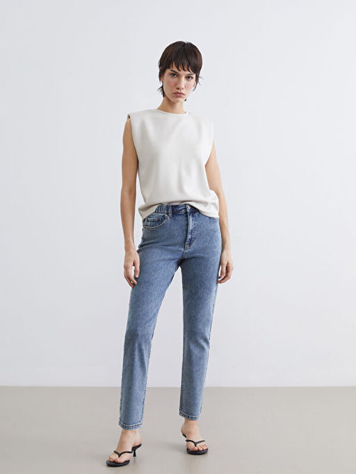 Beli Lastikli Slim Mom Kad?n Jean Pantolon