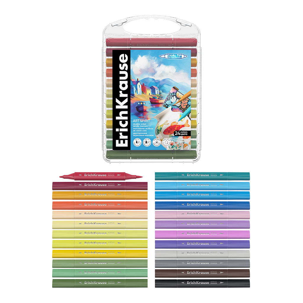 • АКЦИЯ Цена за 12 шт. Цветные маркеры акриловые ErichKrause Art Spirit двусторонние 24 цвета (в пластиковом боксе с европодвесом 24 шт)