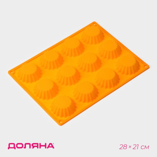Форма для выпечки Доляна «Сладости. Круг реб», силикон, 28×21 см, 12 ячеек, d=6 см, d по дну = 4 см, оранжевая