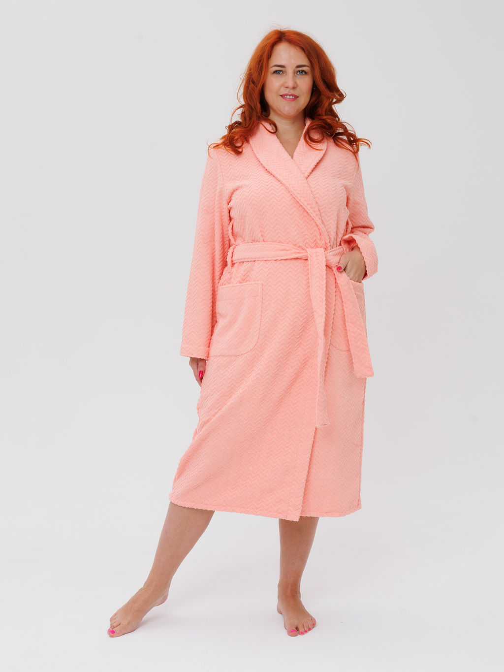 Женский махровый халат с шалькой Елочка светло-коралловый МЗ-02 Елочка (6)