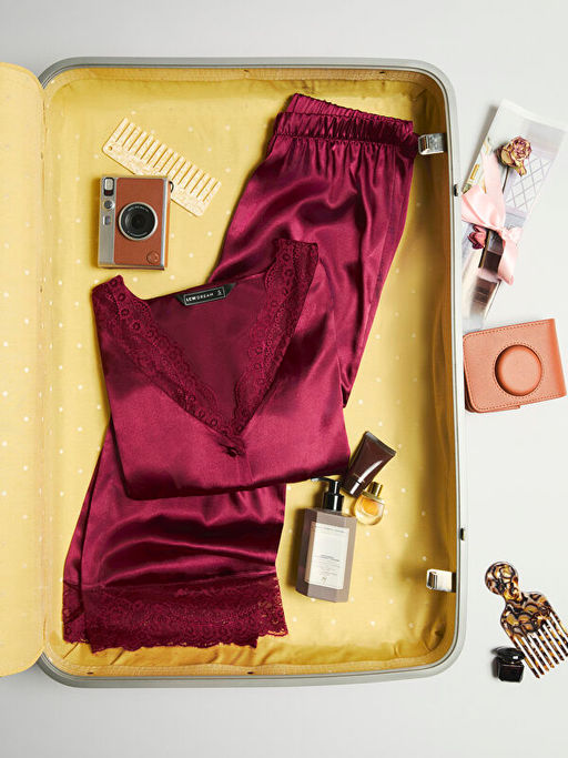 V Yaka Dantel Detayl? Saten Kad?n Pijama Tak?m?