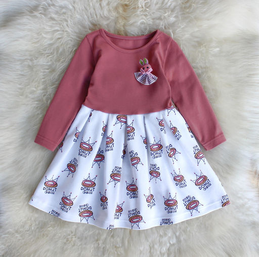Платье детское повседневное из плотного интерлока. Украшено съёмной брошью.