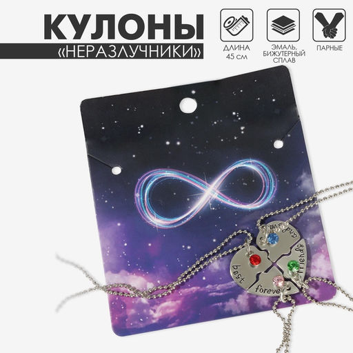 • Кулоны парные «Фантастическая четвёрка», 45 см, цветные в серебре