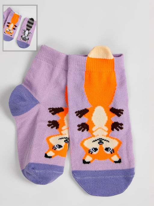 Детские носки из хлопка, с рисунками "зверушки" с хвостом и декоративными элементами на резинке. Рисунок представлен в ассортименте.