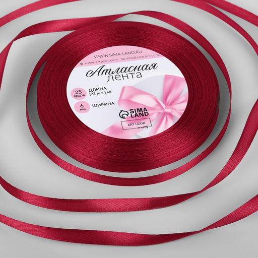 • Цена за 6 шт. Лента атласная, 6 мм × 23 ± 1 м, цвет глубокий красный №33