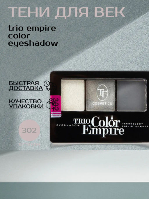• TF Тени для век Трехцветные компактные Trio Empire Color Eyeshadow тон302 графит