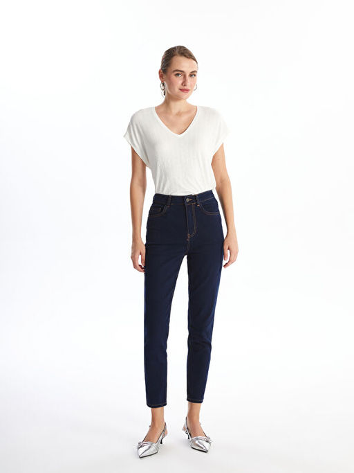 Y?ksek Bel Slim Mom Kad?n Jean Pantolon