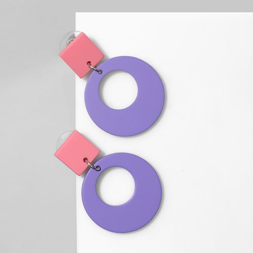 • Серьги металл «Яркость» геометрия, круг, цвет розово-фиолетовый в серебре