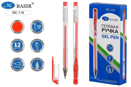 • Цена за 5 шт. Ручка гелевая BASIR (MC-118) красная, 0.5мм