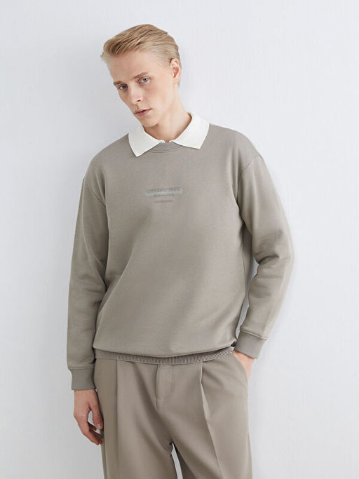 Bisiklet Yaka Bask?l? Erkek Kal?n Sweatshirt
