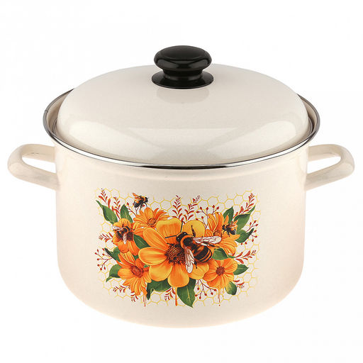 "Цветочный мед" Кастрюля эмалированная 6л, форма цилиндрическая, металлическая крышка (Россия)