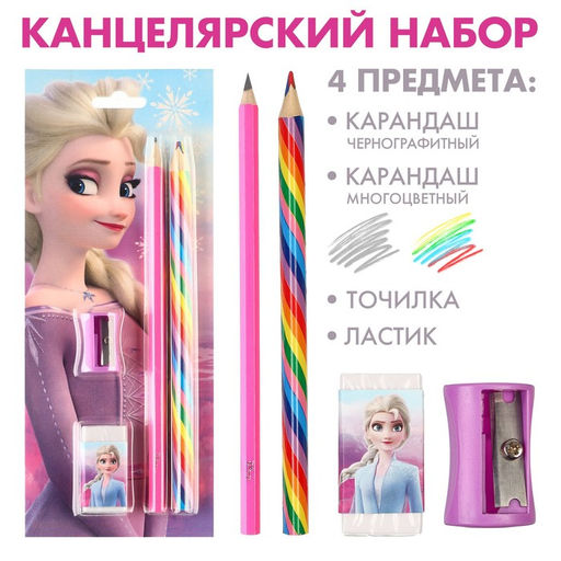 • Канцелярский набор, точилка, ластик, карандаш, «Холодное сердце» МИКС