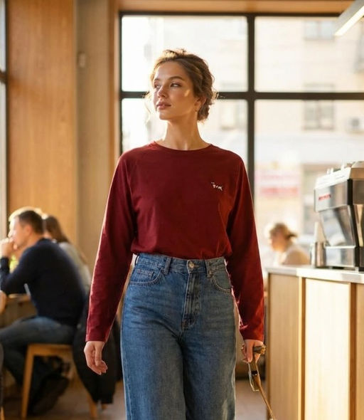 K13370 Лонгслив OVER SIZE с вышивкой БУРГУНДИ