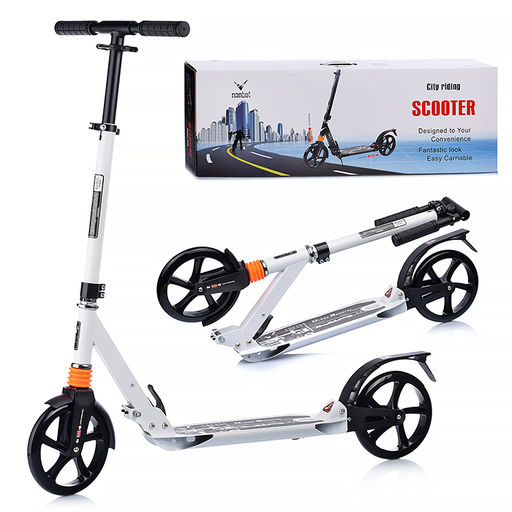 • Самокат 2-х кол., колёса PU/200 мм., складной, белый, в коробке