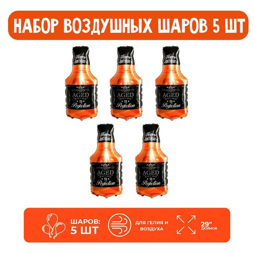 Набор шар фольгированный фигура 29" "Бутылка Виски"; 5 шт.