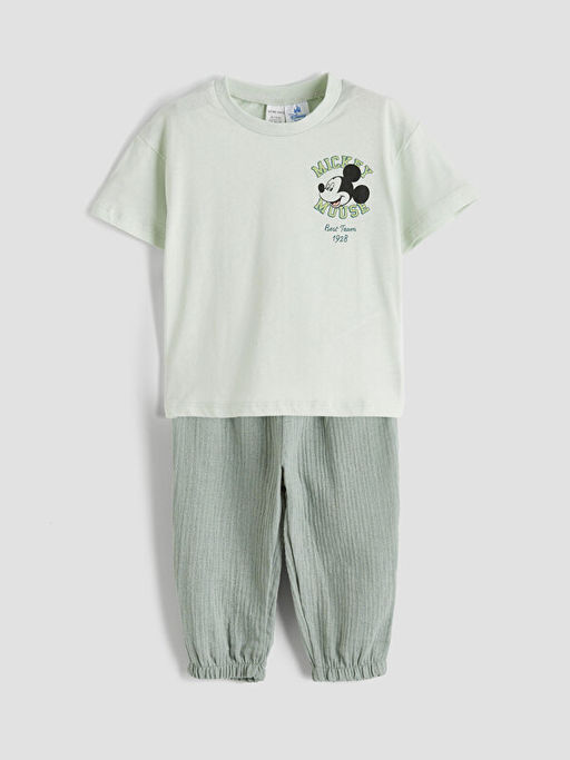 Mickey Mouse Bask?l? Erkek Bebek Ti??rt ve Pantolon