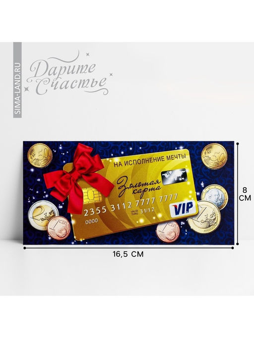 Цена за 10 шт. Конверт для денег «На исполнение мечты» банковская карта, 16.5×8 см