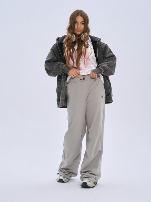 Брюки из трикотажа средней плотности. Пояс на резинке с регулируемыми шнурками для комфортной носки. По низу можно стянуть шнурком. Состав:95% хлопок, 5% эластан