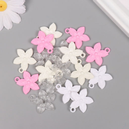 Цена за 2 шт. Декор для творчества пластик Пятилистник, набор 20 г, 3?2.6?0.3 см, МИКС