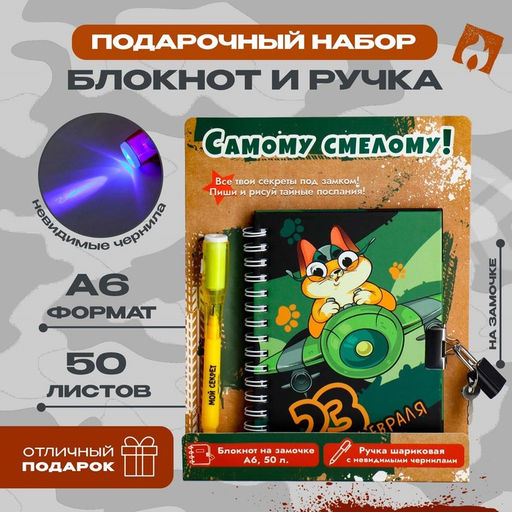 • Подарочный набор «23 февраля», блокнот А6, 50 л и ручка шариковая с невидимыми чернилами