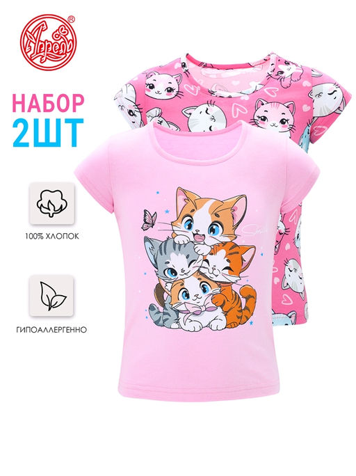 2футболки,хлопок 100%,кулир / хлопок 100%,- / светло-розовый14+котики аниме на розовом / Котята играют / - / - / -