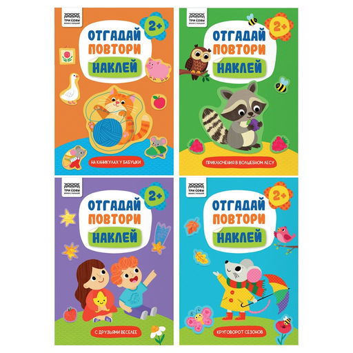 • Книжка с наклейками А5 "Отгадай, повтори, наклей!" 4 вида в ассорт. (КзА5_н_8_64310, ТРИ СОВЫ) 8стр.
