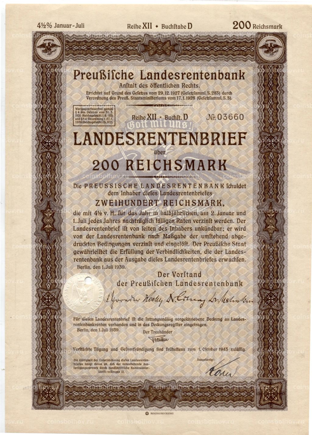 Облигация 4,5% 200 рейхсмарок 1939 года Германия
