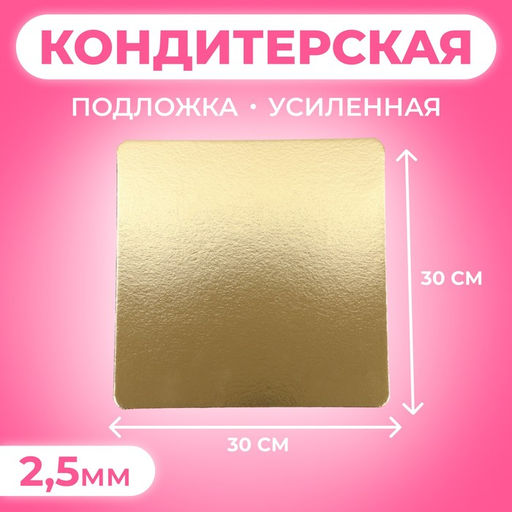 • Цена за 5 шт. Подложка для торта усиленная, 30×30 см, золото 2.5 мм