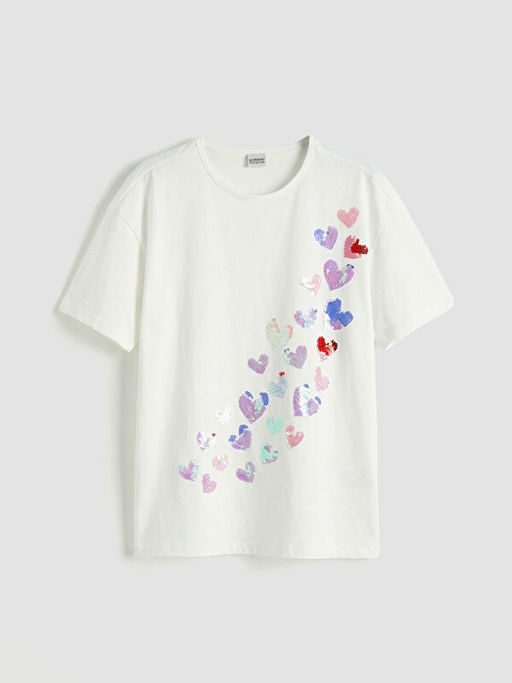 Payetli Kalp Desenli K?z ?ocuk Ti??rt